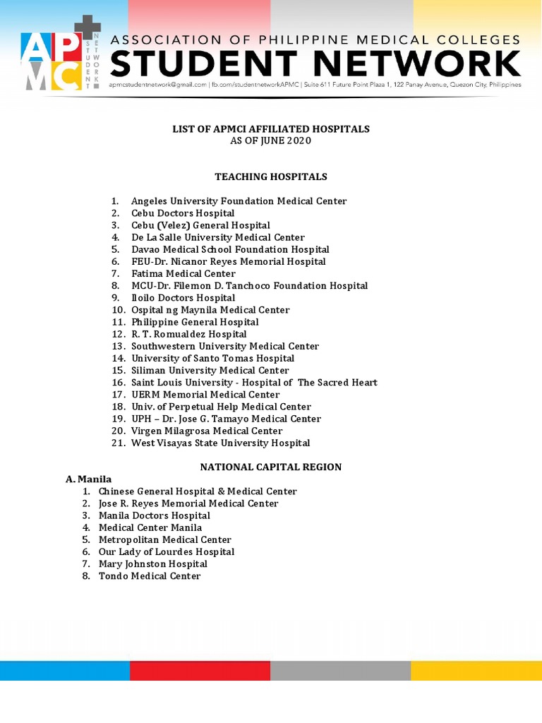 List Of Apmci Affiliated Hospitals Manila Mindanao